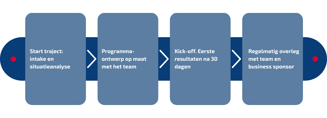 In onze programma’s werken we modulair en gebruiken we diverse werkvormen. Denk aan groepssessies, intervisie, coaching, reflectie- en praktijkopdrachten zoals business challenges. Programma’s variëren gemiddeld in duur van 4 tot 9 maanden.
